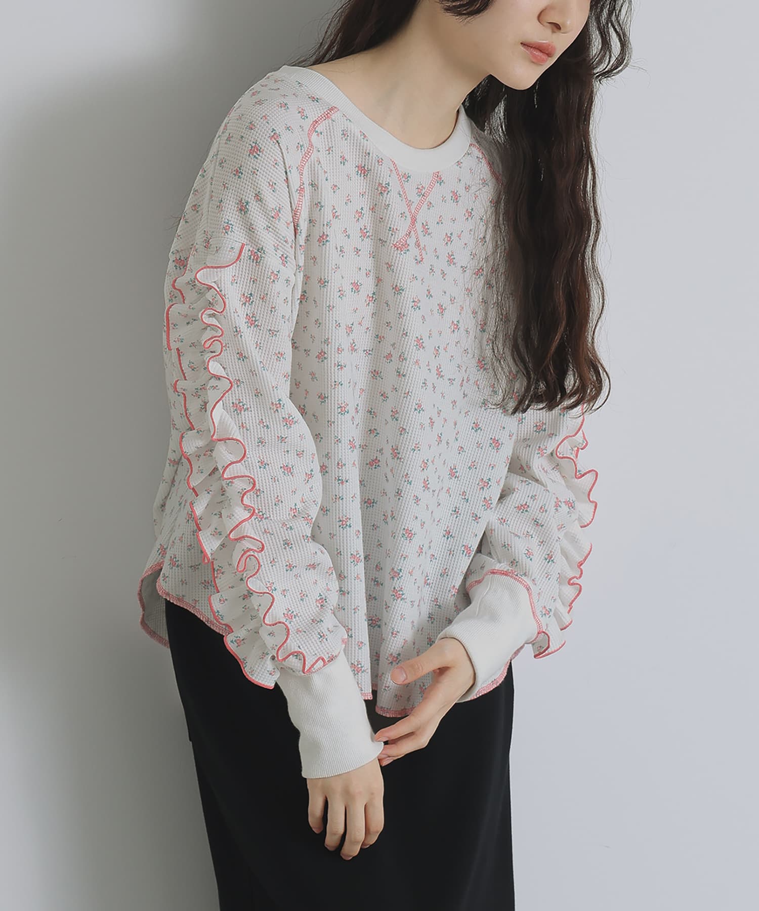 花柄サーマルカットソー※メール便可※【10】 フリーサイズ オフホワイト