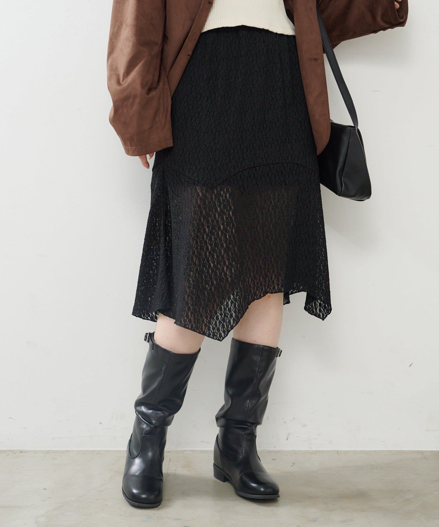 Kastane(カスタネ) レディース レースアシメスカート ブラック