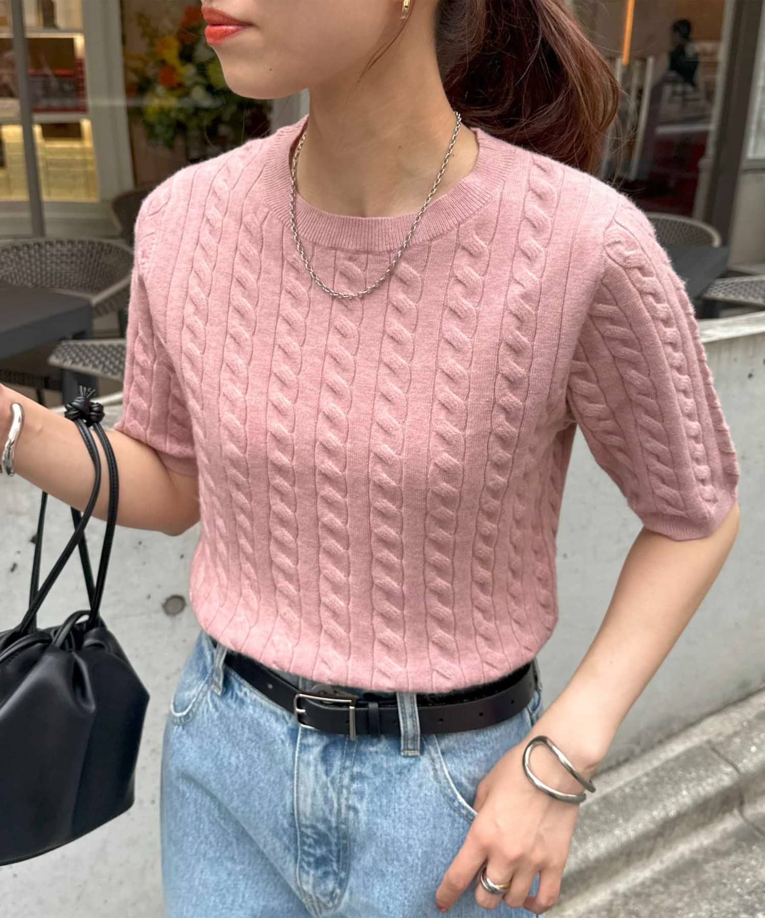 DISCOAT(ディスコート) レディース モチモチケーブル半袖プルオーバー《WEB限定カラーあり》 ピンク