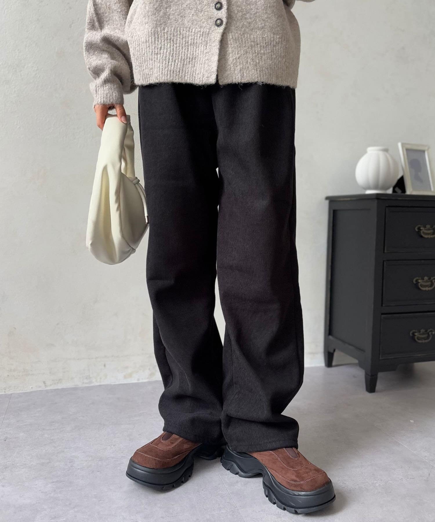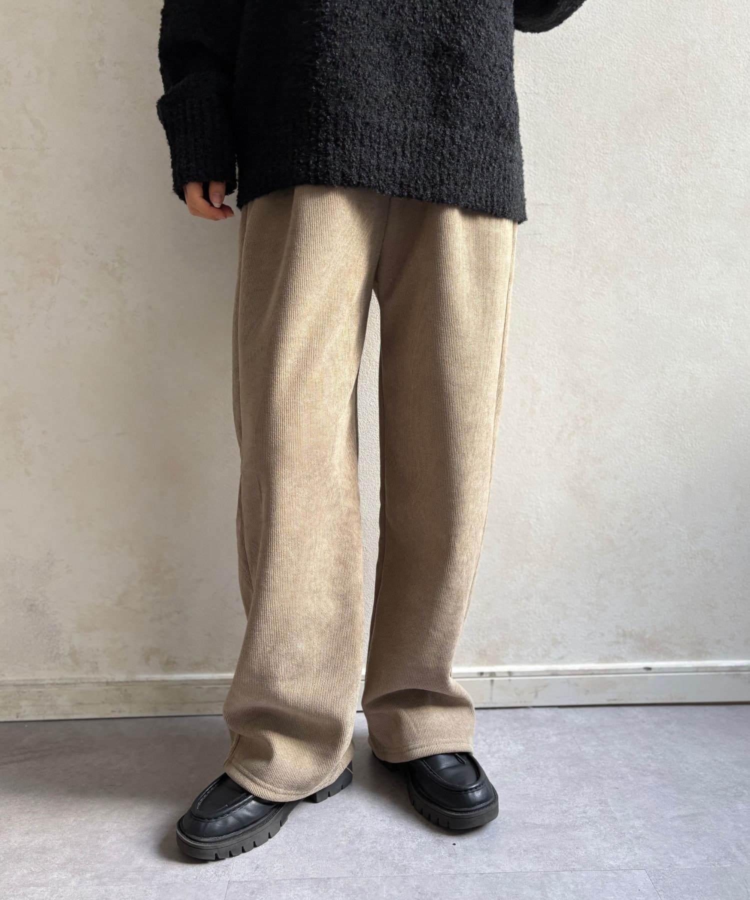 LOCUST(ローカスト) レディース 【暖かく楽ちん・美脚】裏起毛コーデュロイパンツ ブラック