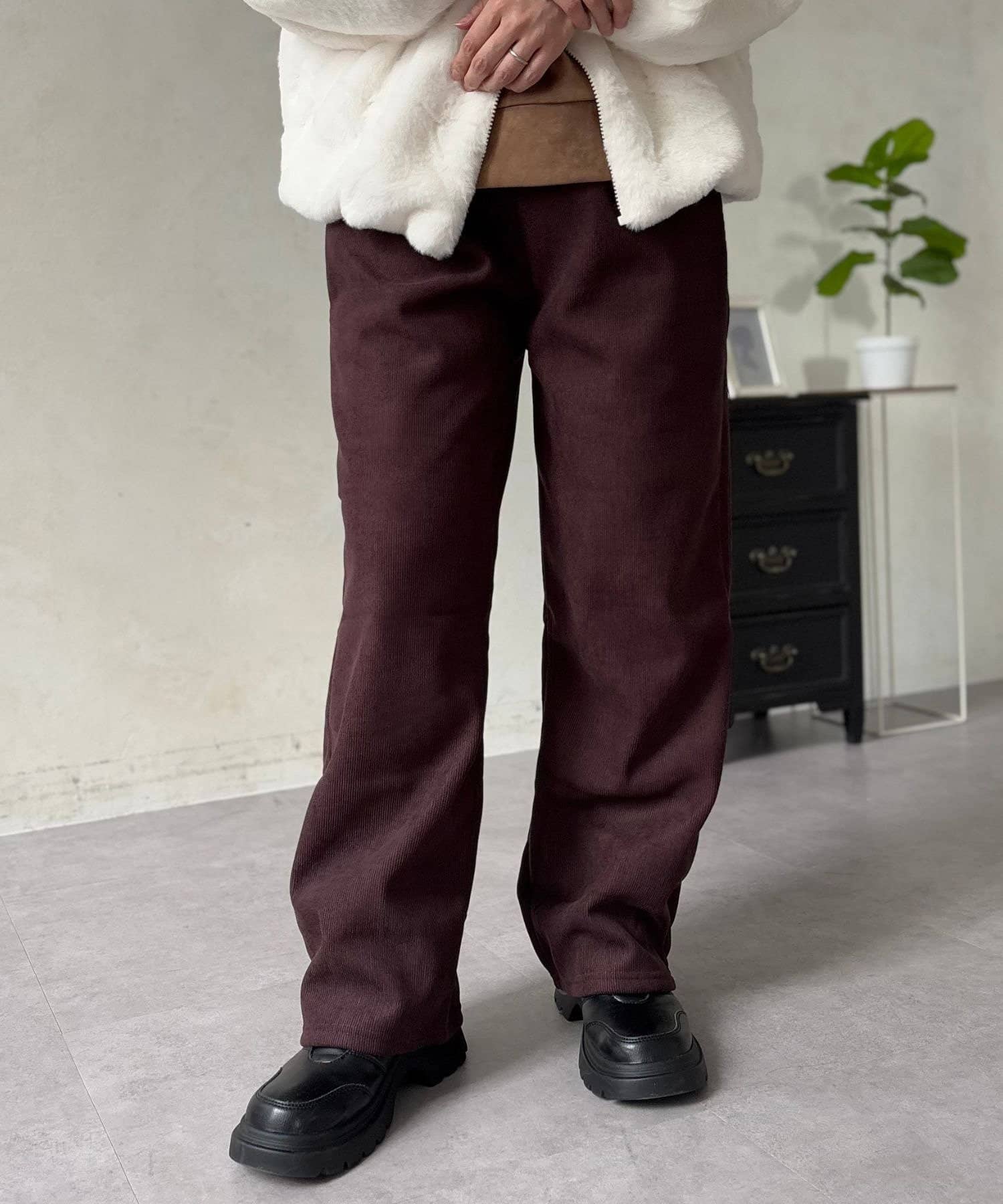 LOCUST(ローカスト) レディース 【暖かく楽ちん・美脚】裏起毛コーデュロイパンツ ブラウン
