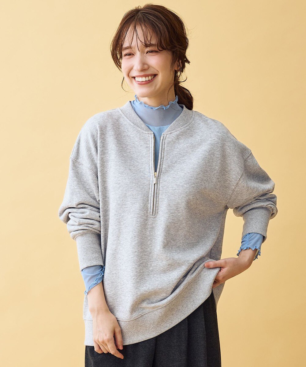 【オンワード】 ANY>トップス ハーフジップスウェット ライトグレー F レディース