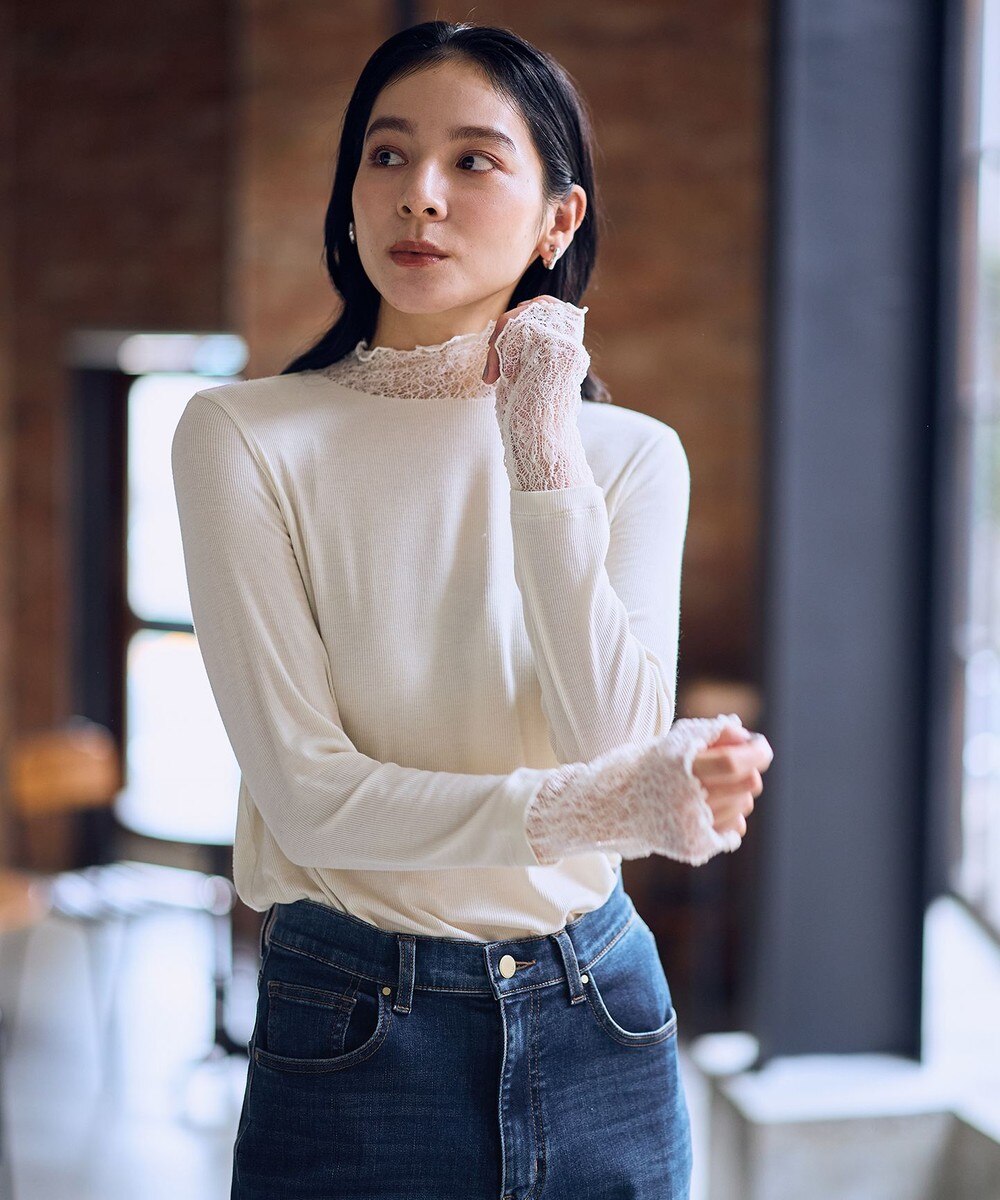 【オンワード】 ANY>トップス 【新色追加】シアーコンビタートル エクリュレース F レディース
