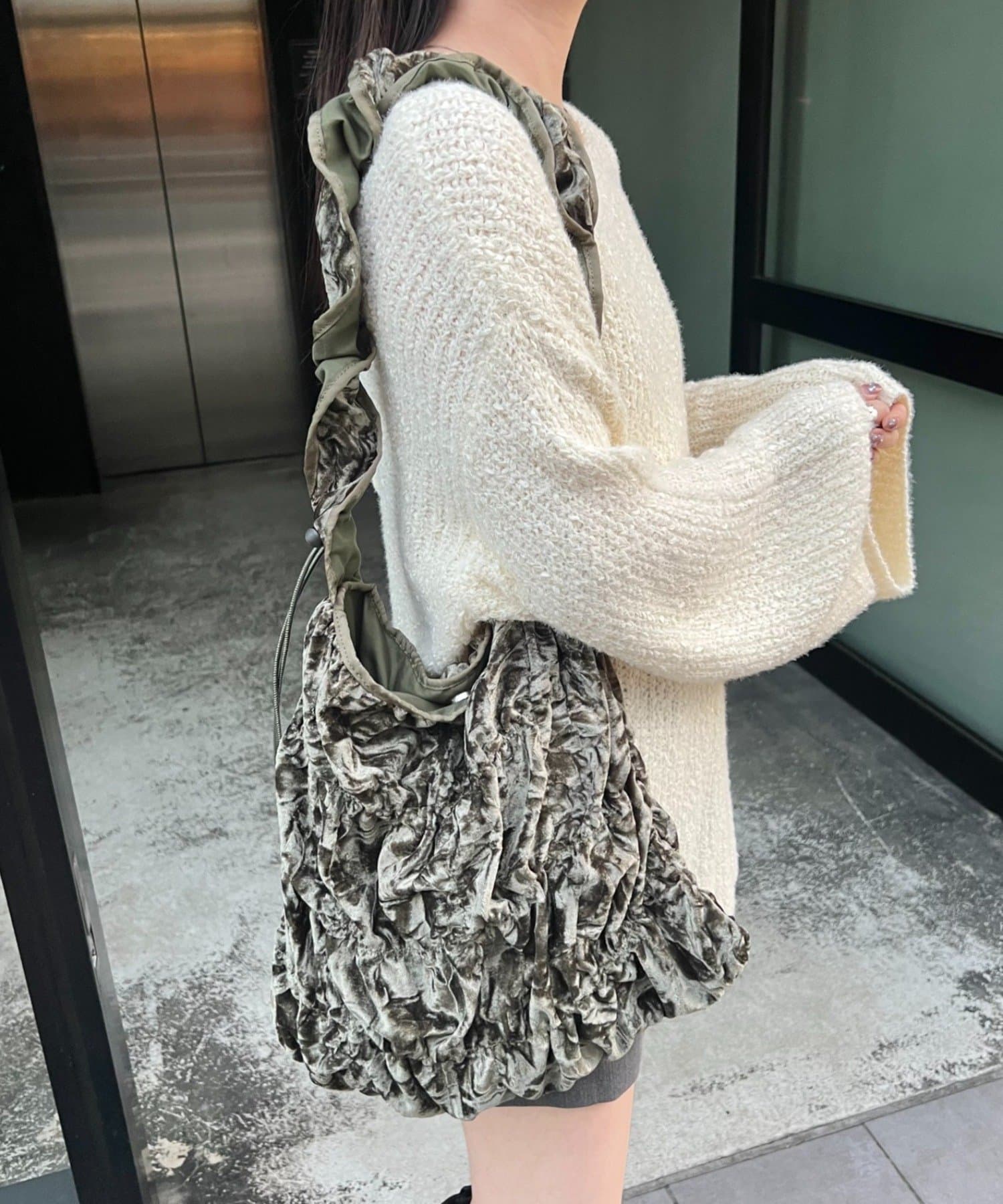 Kastane(カスタネ) レディース 【4色展開/2WAY】ベロアシャーリングバッグ カーキ